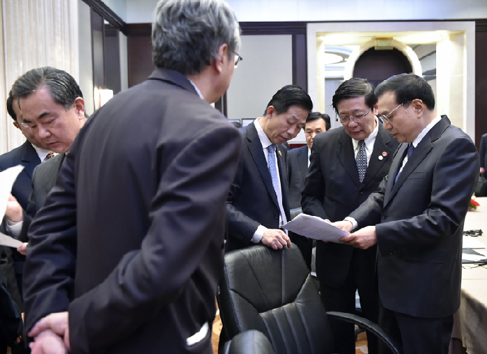 會議間隙的李克強。中新社 劉震 攝