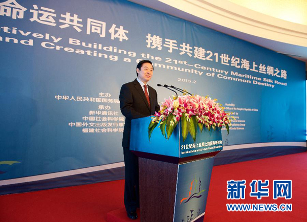 新華網(wǎng)福州2月12日電 2月12日,中共中央政治局委員、中央書記處書記、中宣部部長(zhǎng)劉奇葆出席在福建泉州召開的21世紀(jì)海上絲綢之路國際研討會(huì),發(fā)表《揚(yáng)帆海上絲路 實(shí)現(xiàn)共贏發(fā)展》的主旨演講。