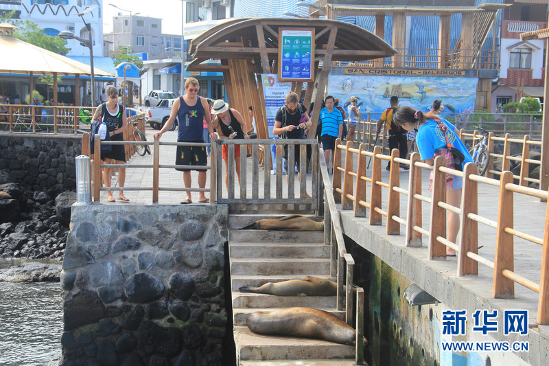 ????加拉帕戈斯群島在厄瓜多爾海岸以西約1000公里的太平洋中,總面積約8000平方公里,由19個火山島組成,從南美大陸延入太平洋,該陸地的地理環(huán)境也令人驚嘆,白色海灘和黑色火山巖石形成鮮明對比。島上現(xiàn)存一些不尋常的動物物種,如象龜、海獅、海蜥蜴、陸蜥蜴、藍腳鰹鳥和多種類型的雀類。島上的動物們以主人自居,并不懼怕人類,海獅就是島上的主人之一。
