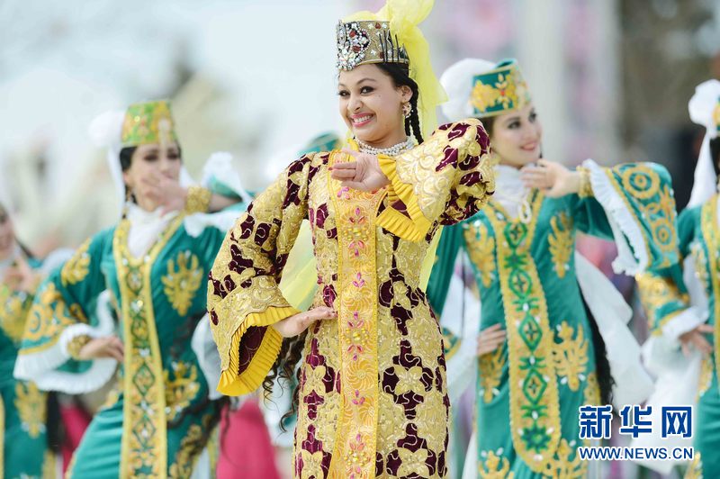 3月21日,烏茲別克斯坦人民在首都塔什干納沃伊國家公園舉行慶?;顒樱瑲g度“納烏茹茲節(jié)”。新華網(wǎng)記者 沙達(dá)提 攝