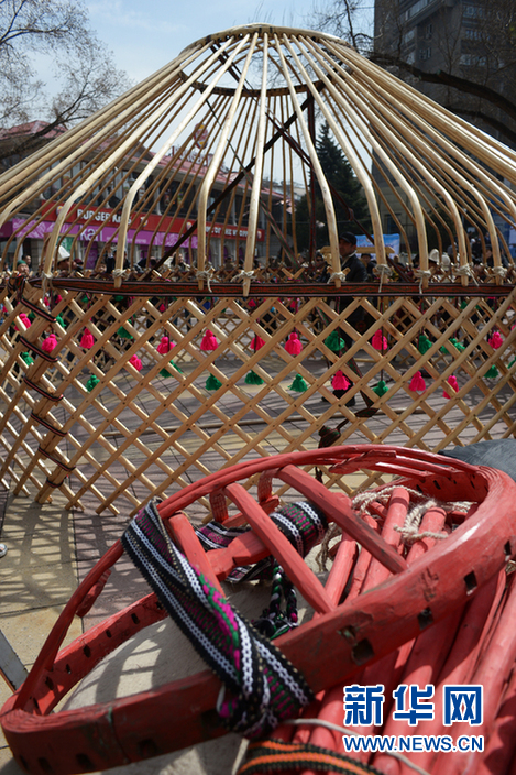 ????4月4日、5日,在阿拉木圖舉辦首界氈房節(jié)。穿著民族服裝的民間藝人搭起具有悠久傳統(tǒng)的哈薩克氈房。氈房上部為穹形,下部為圓柱形,四壁有網(wǎng)狀的木桿搭成整個氈房的骨架,外包白氈。氈房里四周是掛毯,地上是花氈地毯,上面刺著各種圖案,令人賞心悅目。哈薩克斯坦舉辦這次活動是為了將哈薩克氈房列入世界非物質(zhì)文化遺產(chǎn)名錄。(文/盧敬利 圖/葉蓮娜)
