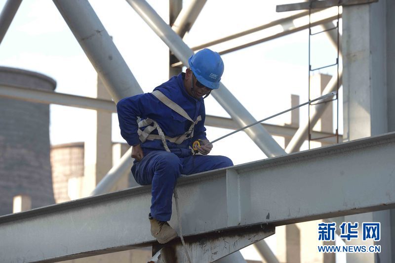 烏茲別克斯坦安格連(市)電廠主廠房鋼結(jié)構(gòu)施工現(xiàn)場。新華網(wǎng)發(fā) 記者沙達(dá)提 攝