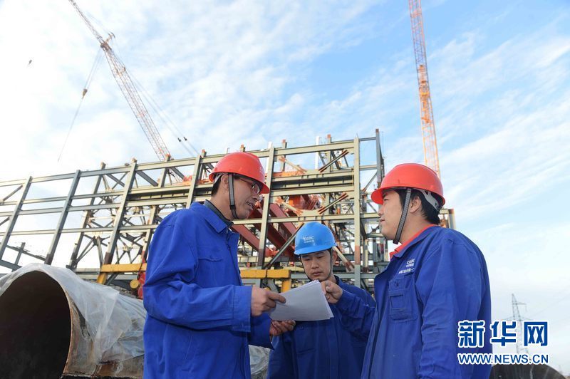 ????烏茲別克斯坦安格連(市)電廠主廠房鋼結(jié)構(gòu)施工,項(xiàng)目經(jīng)理兼項(xiàng)目黨支部書(shū)記楚相華(左)在與現(xiàn)場(chǎng)技術(shù)人員一起探討工程進(jìn)度等情況。新華網(wǎng)發(fā) 記者沙達(dá)提 攝