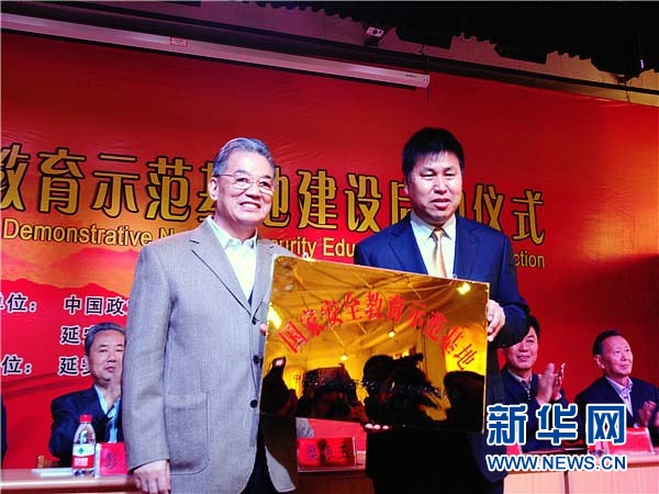 ????新華網(wǎng)延安5月12日電(記者 郝斐然)中國政策科學(xué)研究會(huì)國家安全政策委員會(huì)12日在陜西省延安市為延安中學(xué)“國家安全教育示范基地”授牌。第十一屆全國政協(xié)副主席、中國政策科學(xué)研究會(huì)國家安全政策委員會(huì)名譽(yù)會(huì)長李金華為延安中學(xué)頒發(fā)“國家安全教育示范基地”牌匾。