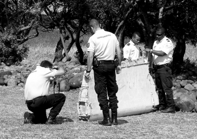 7月29日,在法屬留尼汪島,警察查看一塊飛機殘骸。新華社發(fā)