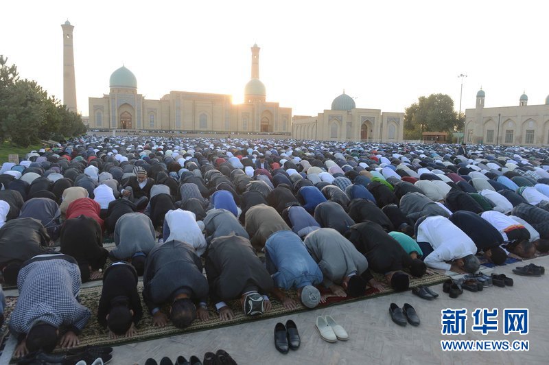 9月24日,在烏茲別克斯坦首都塔什干哈斯特·伊瑪姆建筑群清真寺廣場,人們參加古爾邦節(jié)禮拜。當(dāng)天,烏茲別克斯坦各地慶祝伊斯蘭教傳統(tǒng)節(jié)日古爾邦節(jié)?!肮艩柊罟?jié)”亦稱“宰牲節(jié)”,是伊斯蘭教三大節(jié)日之一。 新華社記者沙達(dá)提 攝