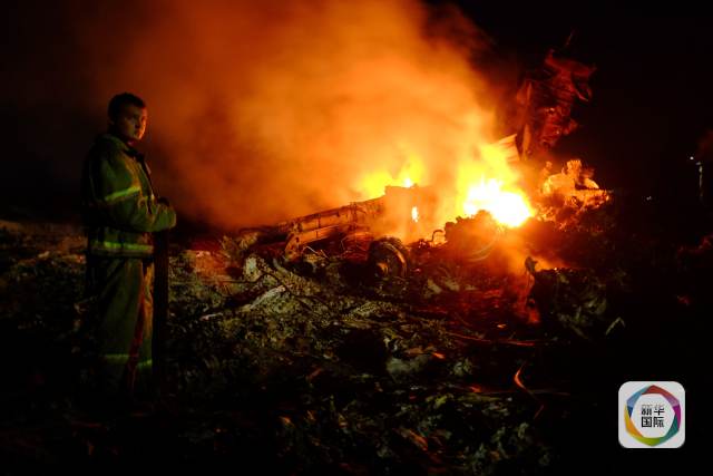2014年7月17日,在烏克蘭東部地區(qū),一名消防員在馬航客機墜毀現(xiàn)場滅火。 新華社/法新