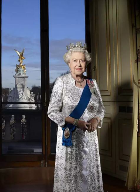 新華網(wǎng)北京10月22日電? 在英國,紅地毯、禮炮、黃金馬車固然都是衡量王室規(guī)格重要的標(biāo)準(zhǔn),但還有一個不為人知的王室規(guī)格標(biāo)準(zhǔn)——女王服飾。讓我們先來看看女王伊麗莎白二世登基60周年時由英國王室放出的一張官方照片。