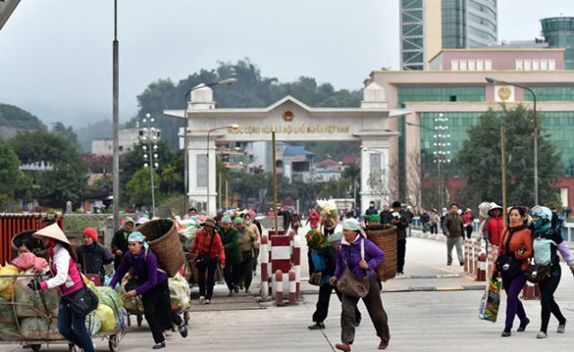 2015年2月5日,越南邊民進入中國河口開展邊境貿(mào)易。