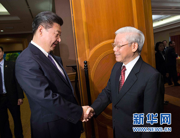 習近平向阮富仲介紹了中國共產黨黨建工作和中共十八屆五中全會提出的“十三五”時期中國經濟社會發(fā)展目標和理念。習近平指出,中越都重視黨建工作,兩黨建設面臨很多相似課題。我們愿同越方加強治黨治國經驗交流,共同提高執(zhí)政能力。中越是具有戰(zhàn)略意義的命運共同體,兩國社會主義事業(yè)的前途命運息息相關。鞏固中越傳統(tǒng)友好關系,加強中越全面戰(zhàn)略合作伙伴關系,符合兩國共同利益。我們要繼續(xù)加強合作,堅持互利共贏,為鞏固發(fā)展兩國社會主義制度、推進社會主義事業(yè)發(fā)展作出重要貢獻。中越要深化傳統(tǒng)友誼,廣泛加強文化交流,加深兩國人民相互理解,使中越友好更加深入人心。