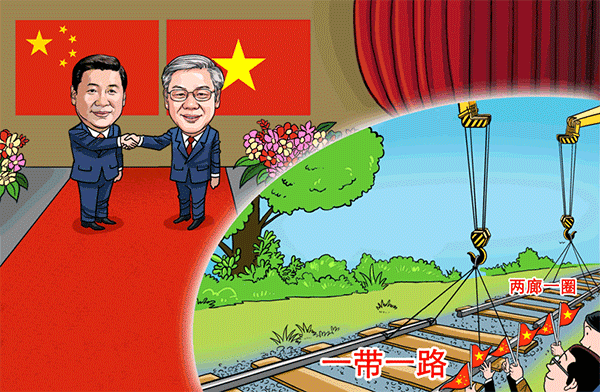 中越是山水相連的友好鄰邦,兩國政治制度相同、發(fā)展道路相近、前途命運相關(guān)。建交65年來,中越雙邊關(guān)系正朝著建設(shè)中越命運共同體的方向不斷前進。習(xí)近平此訪,將增進互信,凝聚共識,發(fā)揚中越“好鄰居、好朋友、好同志、好伙伴”特殊情誼,推動中越關(guān)系沿著正確道路繼續(xù)發(fā)展,擴大“一帶一路”和“兩廊一圈”框架內(nèi)務(wù)實合作,推進中越全面戰(zhàn)略合作伙伴關(guān)系邁上新臺階。(作者系中國社會科學(xué)院世界經(jīng)濟與政治研究所國際政治經(jīng)濟學(xué)研究室副主任徐秀軍 漫畫作者蔡艨)