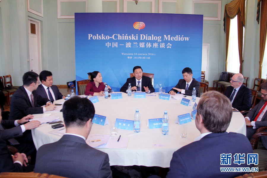 ??? 6月14日,參加中國(guó)—波蘭媒體座談會(huì)的中波媒體代表正在熱烈交流討論。當(dāng)天,由中國(guó)國(guó)務(wù)院新聞辦公室主辦的中國(guó)—波蘭媒體座談會(huì)在波蘭首都華沙召開(kāi),包括新華社、中央電視臺(tái)、中國(guó)國(guó)際廣播電臺(tái)、中國(guó)日?qǐng)?bào)社、新華網(wǎng)、波蘭通訊社、波蘭國(guó)家電視臺(tái)、波蘭《共和國(guó)報(bào)》、波蘭廣播電臺(tái)和波蘭亞洲研究中心等中波媒體代表參加了此次座談會(huì),雙方代表就中波兩國(guó)媒體合作和“一帶一路”建設(shè)等議題進(jìn)行了熱烈的交流和討論。新華網(wǎng)記者 陳序 攝