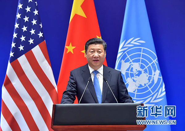 習近平強調(diào),中國是最大的發(fā)展中國家,美國是最大的發(fā)達國家,兩國在氣候變化領(lǐng)域開展了卓有成效的對話和合作。兩國共同交存參加《巴黎協(xié)定》法律文書,展示了共同應對全球性問題的雄心和決心。國際社會應該以落實《巴黎協(xié)定》為契機,加倍努力,不斷加強和完善全球治理體系,創(chuàng)新應對氣候變化路徑,推動《巴黎協(xié)定》早日生效和全面落實。我們要堅持共同但有區(qū)別的責任原則、公平原則、各自能力原則,按照巴黎大會授權(quán),穩(wěn)步推進后續(xù)談判,有效應對氣候變化挑戰(zhàn)。發(fā)達國家要履行承諾,提供資金技術(shù)支持,增強發(fā)展中國家應對氣候變化能力。