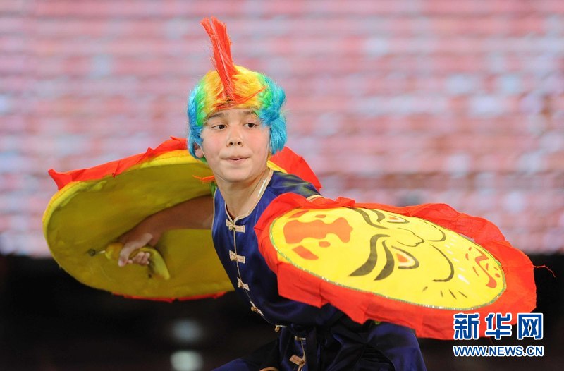 1月18日晚,烏茲別克斯坦首都塔什干人民友誼宮,烏茲別克斯坦中華民族文化中心武術(shù)隊(duì)隊(duì)員在表演武術(shù)。