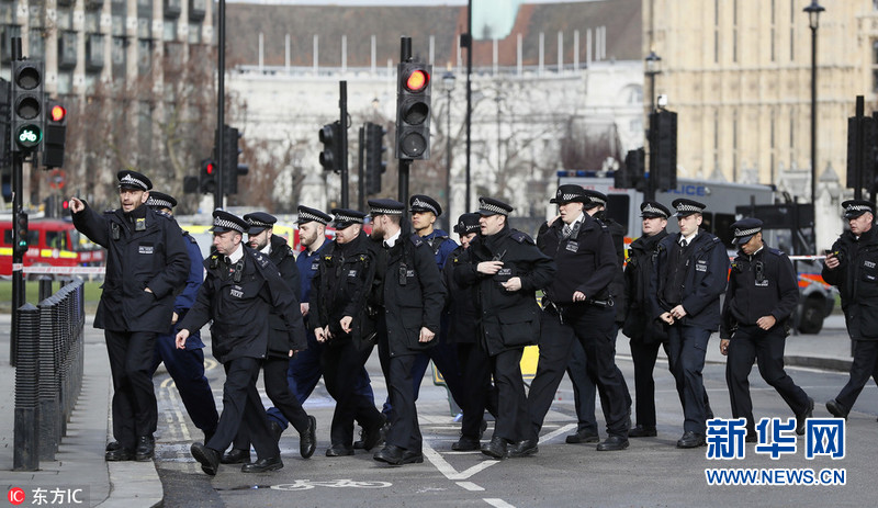 當(dāng)?shù)貢r(shí)間2017年3月22日,英國(guó)倫敦,英國(guó)威斯敏斯特議會(huì)大廈附近發(fā)生襲擊事件,威斯敏斯特橋上有車輛沖撞行人;另外有持刀歹徒攻擊議會(huì)大廈執(zhí)勤警察后被擊斃,報(bào)道稱多人受傷。襲擊發(fā)生后,議會(huì)大廈臨時(shí)關(guān)閉,英國(guó)議會(huì)下院的會(huì)議暫停。倫敦警方目前暫時(shí)將此事作為恐怖事件處理。據(jù)外媒報(bào)道,英國(guó)警方封閉了倫敦議會(huì)大廈周邊的街道。圖片來(lái)源:東方IC