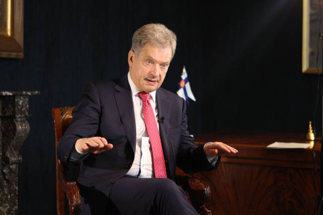 4月3日,在芬蘭赫爾辛基,芬蘭總統(tǒng)尼尼斯托接受新華社記者的專(zhuān)訪。(新華社記者張璇攝)