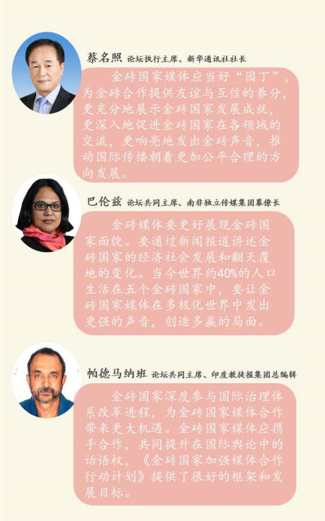 在論壇上,各方還通過了《金磚國家加強媒體合作行動計劃》。相信在未來,金磚國家媒體的合作內(nèi)涵、合作深度、合作廣度將與金磚國家戰(zhàn)略伙伴關(guān)系一同進(jìn)一步拓展深化!