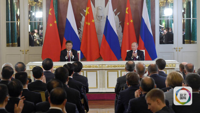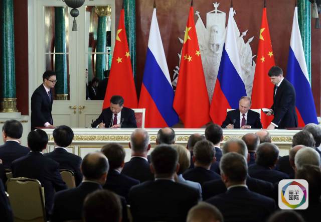7月4日,國家主席習(xí)近平在莫斯科克里姆林宮同俄羅斯總統(tǒng)普京舉行會談。這是會談后,兩國元首共同出席簽字儀式。新華社記者 謝環(huán)馳 攝