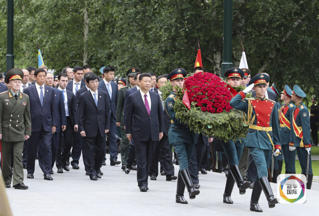 7月4日,國家主席習(xí)近平在莫斯科向俄羅斯無名烈士墓敬獻花圈。新華社記者 謝環(huán)馳 攝