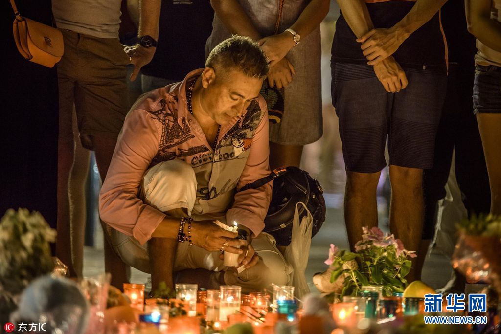 當(dāng)?shù)貢r(shí)間2017年8月18日,西班牙巴塞羅那,當(dāng)?shù)孛癖婞c(diǎn)燭獻(xiàn)花悼念恐襲事件遇難者。17日,一輛白色貨車在巴塞羅那市中心蘭布拉大道加泰羅尼亞廣場(chǎng)附近沖撞人群,據(jù)媒體報(bào)道,死亡人數(shù)已經(jīng)升至14人。(圖片來(lái)源: 東方IC)