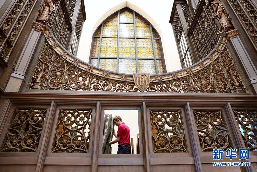 德國管風(fēng)琴修理師弗朗茨·羅思在進行卡薩翁內(nèi)部維修工作(10月23日攝)。 100年前,它誕生在美國波士頓,轟動一時,成為北美四大名琴之一。然而,歷史的變遷中,它一度傷痕累累,無法再發(fā)聲。新華社記者 姜克紅攝