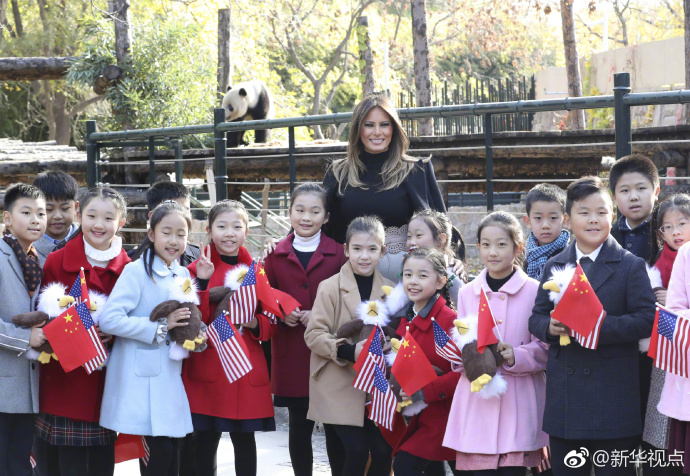 11月10日上午,美國總統(tǒng)特朗普的夫人梅拉尼婭參觀北京動物園熊貓館。來看現(xiàn)場照片?。ㄓ浾啐嬇d雷、王慧慧)(新華社“新華視點(diǎn)”微博報道)