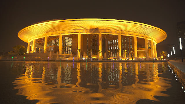 河內(nèi)西南部開發(fā)區(qū)黎光道188號(hào),中方援建的越中友誼宮坐落于此。這座建筑呈現(xiàn)蓮花造型,外部四角布有水池,營造出一種出水芙蓉的意境。白色的立柱環(huán)抱著柚木色的主墻,典雅精致。外圓而內(nèi)方的設(shè)計(jì),象征和諧、團(tuán)結(jié)與圓滿,傳遞中越友誼長存、世代友好的深意。