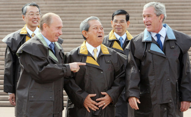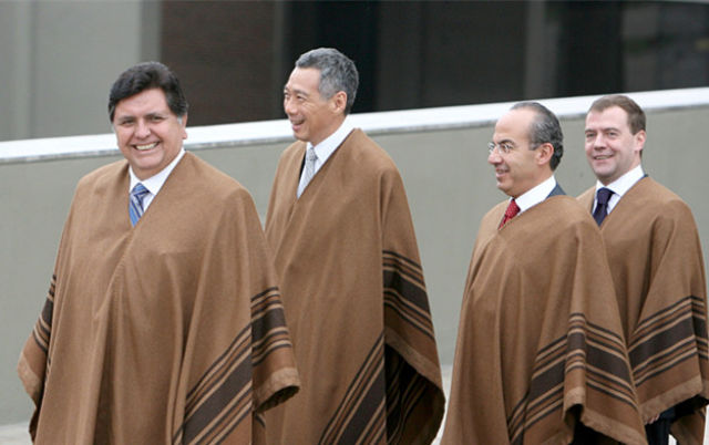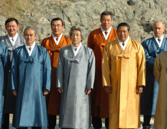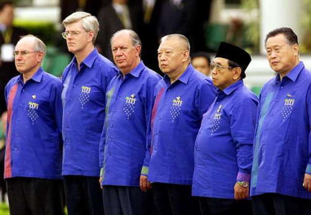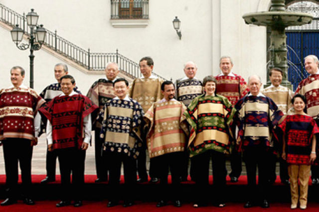 1993年,首屆APEC領(lǐng)導(dǎo)人非正式會(huì)議在美國(guó)西雅圖召開(kāi)。各經(jīng)濟(jì)體領(lǐng)導(dǎo)人不帶助手和隨身翻譯,不穿正裝。從那以后,在一年一度的APEC領(lǐng)導(dǎo)人非正式會(huì)議期間,東道主通常會(huì)為與會(huì)領(lǐng)導(dǎo)人提供特別制作的當(dāng)?shù)貍鹘y(tǒng)服裝,在宣介東道主傳統(tǒng)文化的同時(shí),也體現(xiàn)“亞太大家庭”的理念。