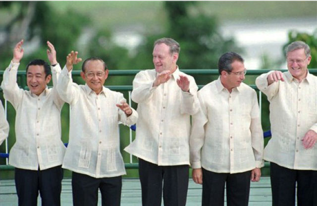 時(shí)任印尼總統(tǒng)蘇哈托贈(zèng)送每位領(lǐng)導(dǎo)人一件巴提克——一種蠟染印花襯衣。