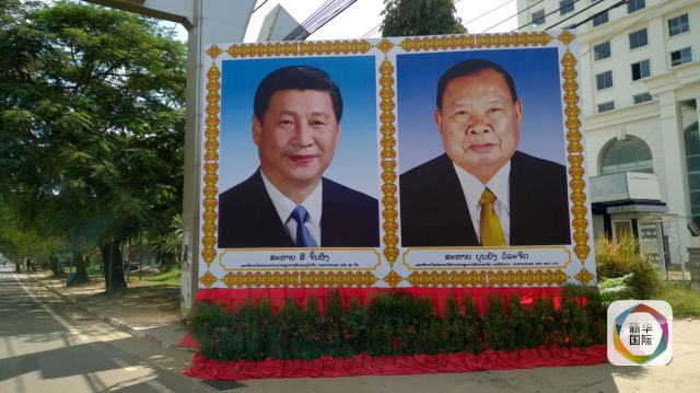 在老撾國(guó)家主席府正門,懸掛著習(xí)近平主席和老撾國(guó)家主席本揚(yáng)的大幅畫(huà)像。乘車路過(guò)的老撾青年人朝在主席府外采訪的中國(guó)記者熱情打著招呼,歡笑聲灑了一路。