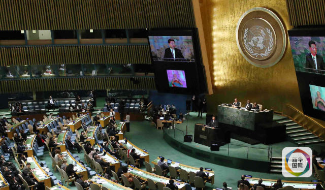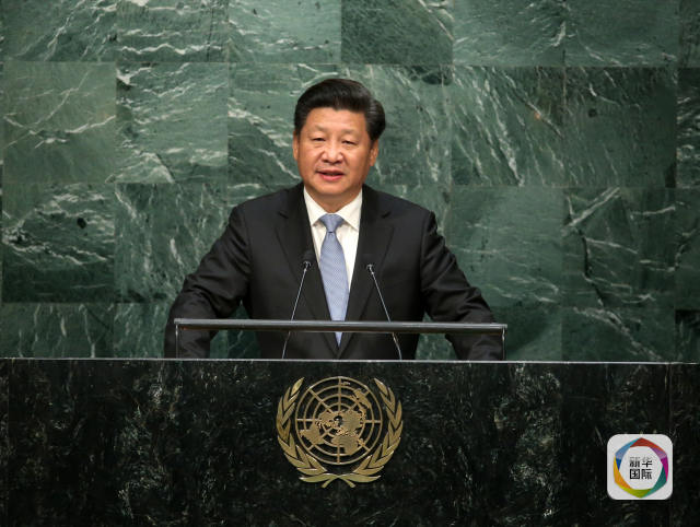 2015年9月28日,國家主席習(xí)近平在紐約聯(lián)合國總部出席第70屆聯(lián)合國大會一般性辯論并發(fā)表題為《攜手構(gòu)建合作共贏新伙伴 同心打造人類命運共同體》的重要講話。新華社記者龐興雷攝