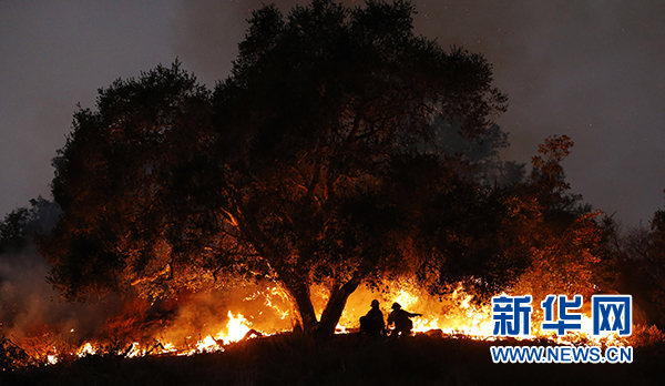 12月11日,在美國(guó)加利福尼亞州卡平特里亞,消防員在山火現(xiàn)場(chǎng)工作。新華社記者李穎攝