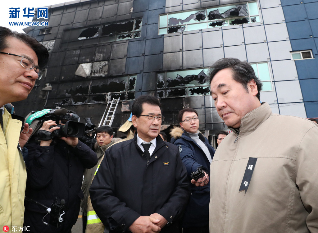 12月23日,韓國忠清北道堤川市,韓國總理李洛淵視察運(yùn)動(dòng)中心火災(zāi)現(xiàn)場(chǎng)。據(jù)報(bào)道,21日,韓國忠清北道堤川市一運(yùn)動(dòng)中心發(fā)生火災(zāi),造成29死29傷,其中20名死者在火災(zāi)發(fā)生時(shí)位于大樓2層的桑拿房?jī)?nèi)。近日,韓媒公布了火災(zāi)現(xiàn)場(chǎng)的一組照片。照片顯示,桑拿房堆積了各種洗浴用品,應(yīng)急出口幾乎被封死。(圖片來源:東方IC)