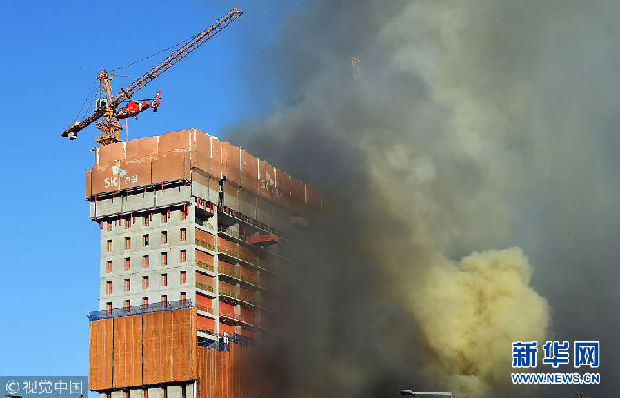 韓國(guó)水原市建筑工地發(fā)生火災(zāi) 現(xiàn)場(chǎng)濃煙滾滾
