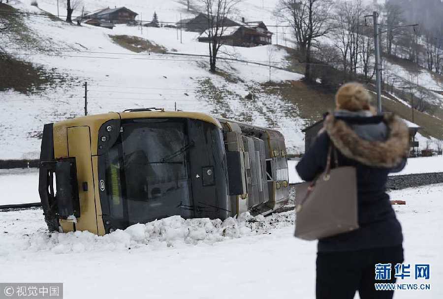 風(fēng)暴“埃莉諾”襲擊瑞士 火車被大風(fēng)吹脫軌