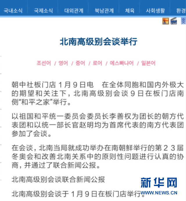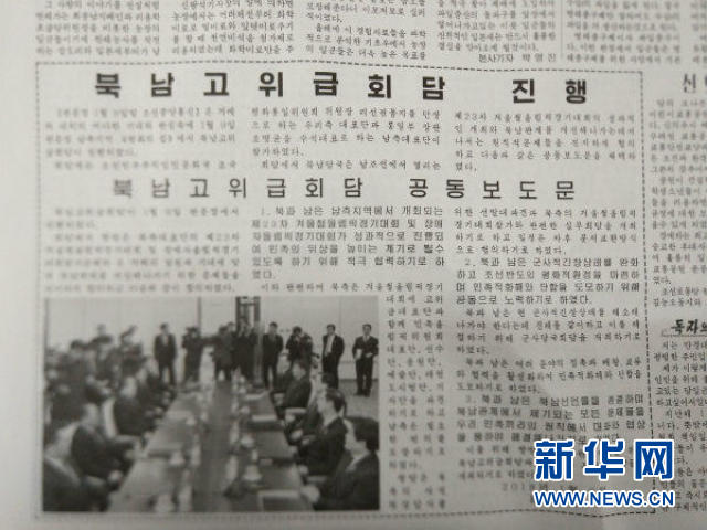 文章前一部分是對會談情況的簡單介紹,后一部分直接發(fā)布了朝韓高級別會談聯(lián)合新聞公報的內容。