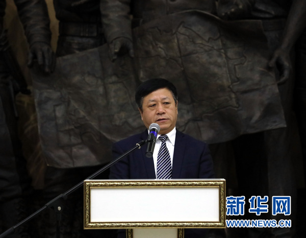 中國(guó)駐哈薩克斯坦大使張漢暉在圖片展開(kāi)幕式上致辭。新華網(wǎng)發(fā)