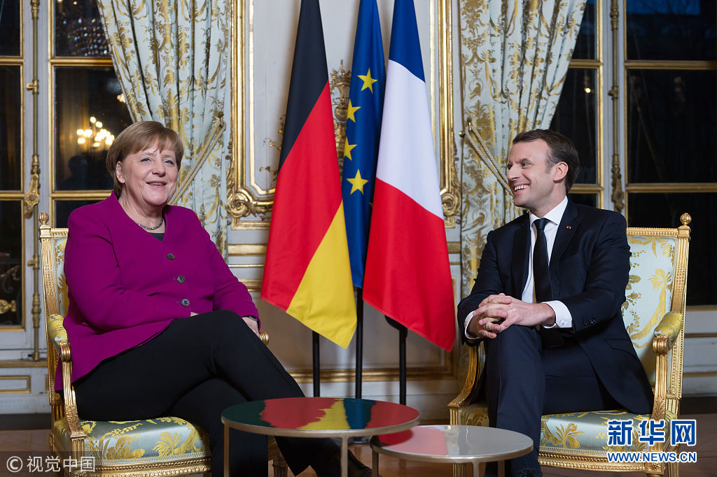 當(dāng)?shù)貢r(shí)間2018年1月19日,法國(guó)巴黎,法國(guó)總統(tǒng)馬克龍?jiān)趷?ài)麗舍宮會(huì)晤到訪的德國(guó)總理默克爾,表示在推動(dòng)歐洲改革的進(jìn)程中,法國(guó)需要德國(guó)。馬克龍以此對(duì)面臨大選后組閣危機(jī)的默克爾表達(dá)支持。馬克龍?jiān)跁?huì)后強(qiáng)調(diào)了法德合作的重要性。他表示,法國(guó)無(wú)法單獨(dú)實(shí)現(xiàn)自身的抱負(fù),需要與德國(guó)的抱負(fù)結(jié)合起來(lái)。