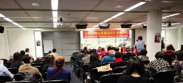 當(dāng)?shù)貢r(shí)間20日下午,近百名旅居德國(guó)法蘭克福的華人在德國(guó)法蘭克福機(jī)場(chǎng)舉行會(huì)議,為首位競(jìng)選法蘭克福市市長(zhǎng)的德國(guó)華人楊明先生吶喊助威,組織選票。
