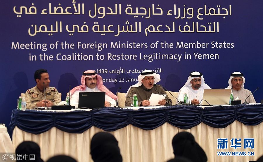 1月22日,沙特利雅得,沙特主導(dǎo)的打擊也門反政府武裝盟國(guó)舉行外長(zhǎng)會(huì)議。為緩解人道危機(jī),沙特主導(dǎo)的多國(guó)聯(lián)軍22日發(fā)表聲明說(shuō),將向也門提供15億美元的新援助。同時(shí),打開(kāi)一條通往中部馬里卜省的空中走廊以及17條陸上走廊,以運(yùn)送援助物資;增擴(kuò)也門口岸,以接收人道和基本物資。(圖片來(lái)源:視覺(jué)中國(guó))