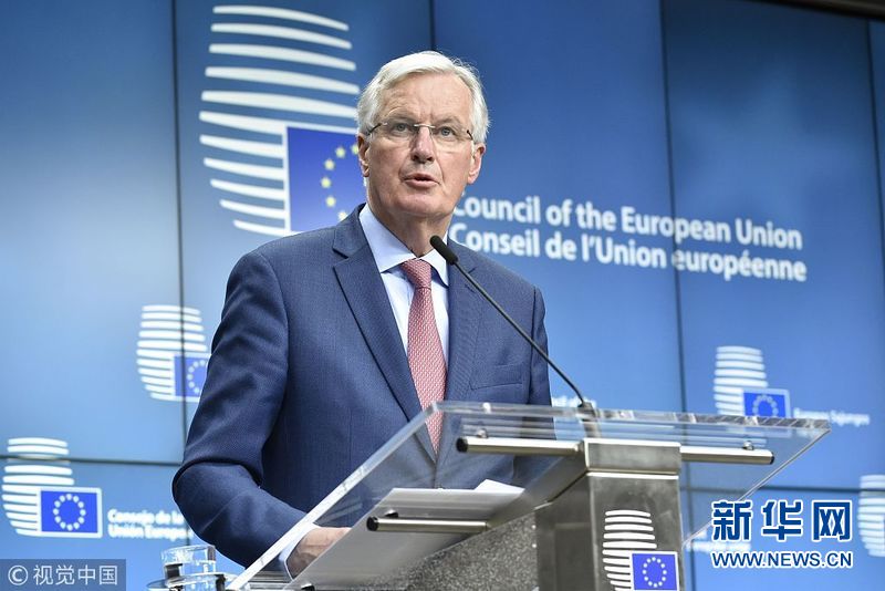 1月29日,歐盟首席“脫歐”談判代表米歇爾·巴尼耶舉行新聞發(fā)布會。歐盟總務委員會在布魯塞爾舉行會議,歐盟各成員國代表同意,在英國脫歐之后給予英國將近兩年的過渡期,過渡期將持續(xù)到2020年12月31日。在此期間,英國可以進入歐盟單一市場,但沒有任何決策權。(圖片來源:視覺中國)