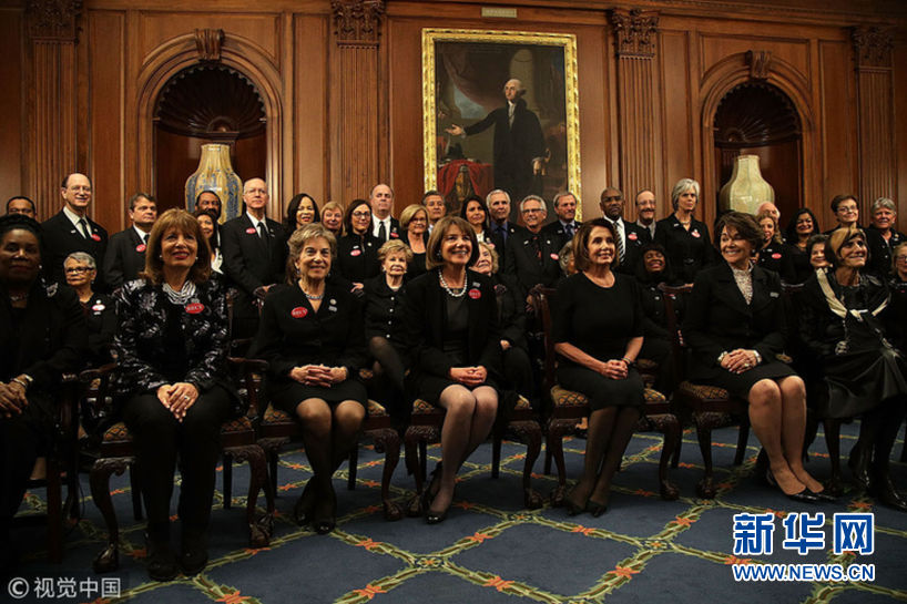 當(dāng)?shù)貢r(shí)間1月30日,美國(guó)華盛頓,民主黨國(guó)會(huì)議員和性侵幸存者一同穿黑衣現(xiàn)身國(guó)會(huì)大廈,聲援勇敢反對(duì)性騷擾和歧視的人們。眾議院民主黨人計(jì)劃穿黑衣出席特朗普的國(guó)情咨文演講,支持MeToo和TimesUp組織。 (圖片來(lái)源:視覺(jué)中國(guó))