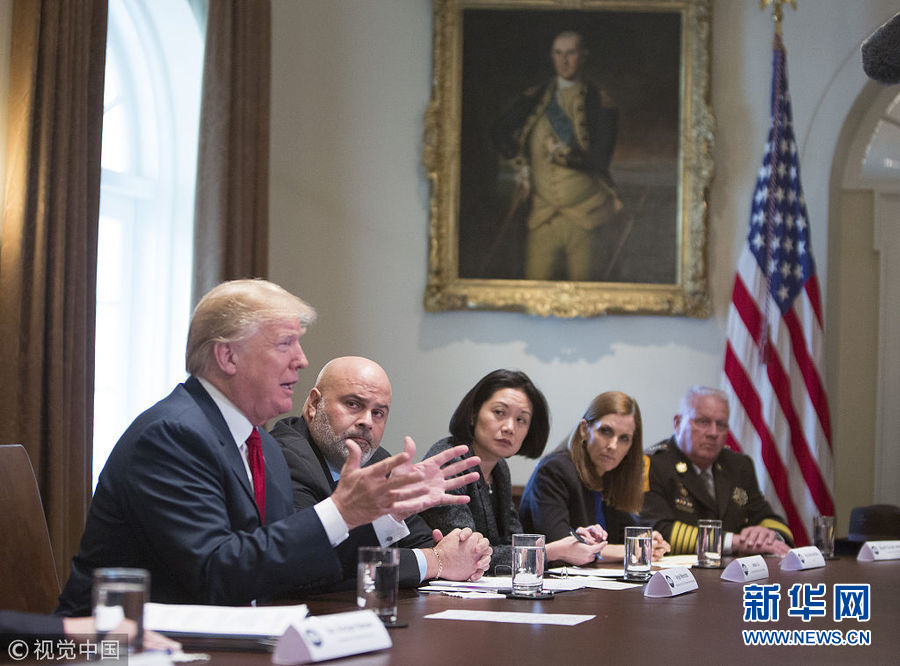 2月6日,美國(guó)華盛頓,美國(guó)總統(tǒng)特朗普主持執(zhí)法機(jī)關(guān)圓桌會(huì)議,討論打擊黑幫“MS-13”事宜。(圖片來源:視覺中國(guó))