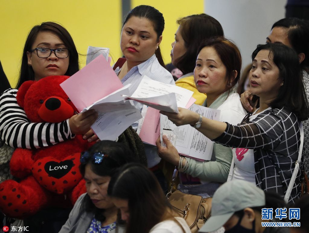 當(dāng)?shù)貢r間2018年2月21日,菲律賓馬尼拉,從科威特返回的菲律賓海外勞工抵達(dá)馬尼拉國際機場。據(jù)外媒報道,宿霧太平洋航空公司為至少396名海外菲律賓工人提供空運支持,助其免費搭乘飛機回家。據(jù)悉,菲律賓政府已下令禁止民眾前往科威特務(wù)工。據(jù)悉,菲律賓總統(tǒng)杜特爾特稱,近來有在科威特打工的菲律賓女傭因不堪虐待或性侵選擇自殺。(圖片來源: 東方IC)