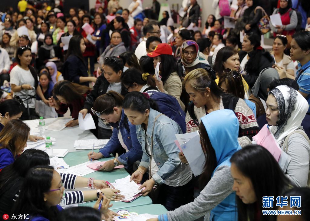 當(dāng)?shù)貢r(shí)間2018年2月21日,菲律賓馬尼拉,從科威特返回的菲律賓海外勞工抵達(dá)馬尼拉國(guó)際機(jī)場(chǎng)。據(jù)外媒報(bào)道,宿霧太平洋航空公司為至少396名海外菲律賓工人提供空運(yùn)支持,助其免費(fèi)搭乘飛機(jī)回家。據(jù)悉,菲律賓政府已下令禁止民眾前往科威特務(wù)工。據(jù)悉,菲律賓總統(tǒng)杜特爾特稱,近來(lái)有在科威特打工的菲律賓女傭因不堪虐待或性侵選擇自殺。(圖片來(lái)源: 東方IC)