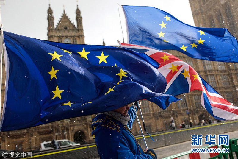 2月26日,英國倫敦,示威者在議會大廈外抗議“脫歐”。(圖片來源:視覺中國)