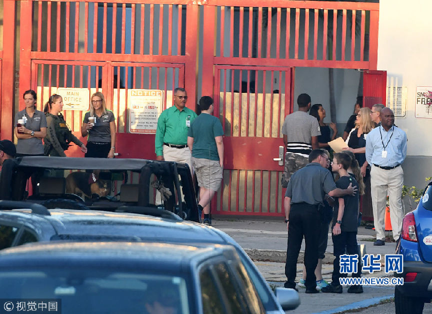 當?shù)貢r間2月28日,美國佛羅里達州帕克蘭,發(fā)生槍擊案的道格拉斯中學復課,學生和教職工重返校園,大批警察出動維護治安。2月14日,一名19歲的槍手在學校里開槍,造成17人死亡。(圖片來源:視覺中國)