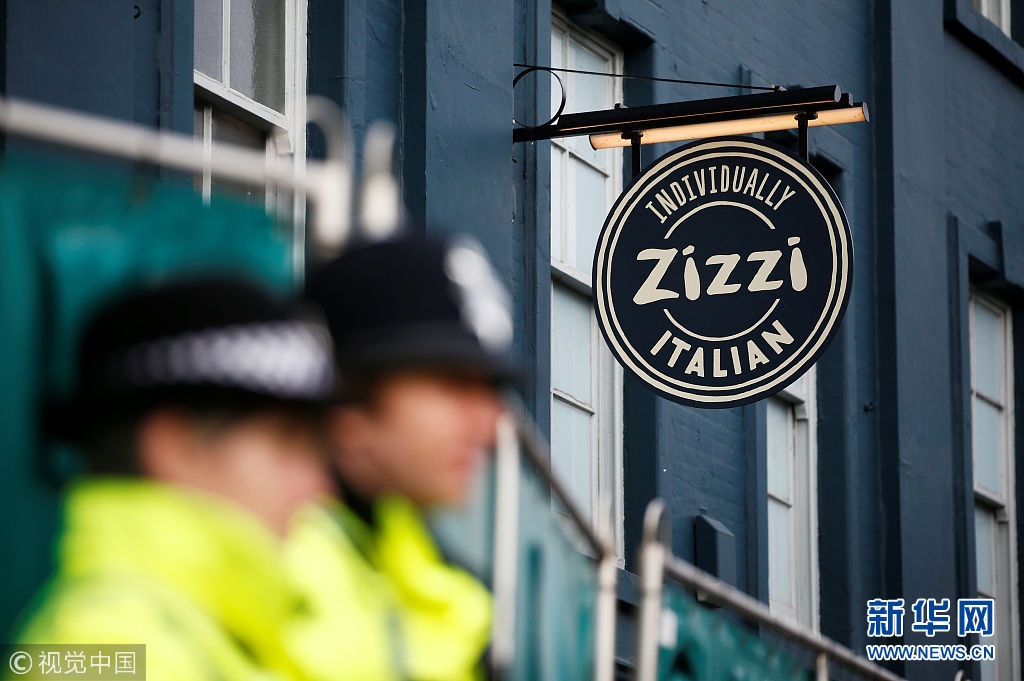 當(dāng)?shù)貢r(shí)間2018年3月11日,英國(guó)索爾茲伯里市,Zizzi餐廳關(guān)閉進(jìn)行調(diào)查工作。警方在威爾特郡索爾茲伯里市一家意大利餐廳發(fā)現(xiàn)神經(jīng)毒劑的痕跡,斯克里帕爾父女中毒前在那里用餐。(圖片來(lái)源:視覺(jué)中國(guó))