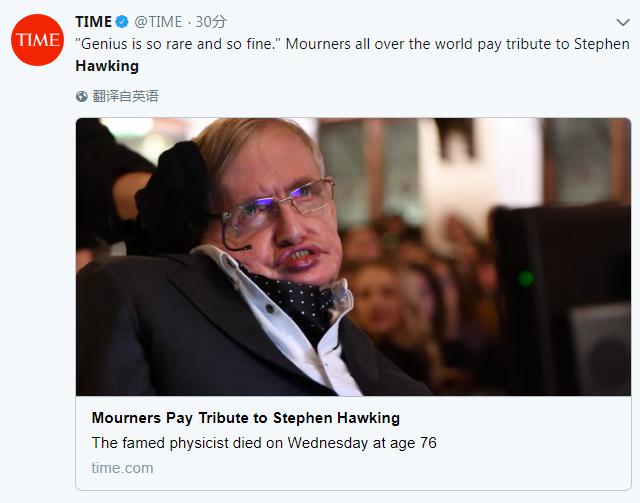 霍金去世,世界各地網(wǎng)友在社交媒體發(fā)起紀(jì)念活動