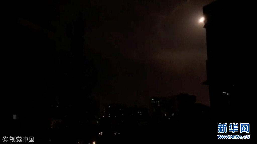 4月14日,敘利亞大馬士革,特朗普決定聯(lián)合英國和法國對敘利亞進行精確打擊,大馬士革傳出爆炸聲,敘利亞方面進行反擊。敘利亞阿拉伯敘利亞通訊社(SANA)報道,敘政府軍在大馬士革以南地區(qū)擊落13枚導(dǎo)彈。敘利亞國家電視臺此前稱美英法三國對敘利亞“發(fā)動了侵略”。(圖片來源:視覺中國)